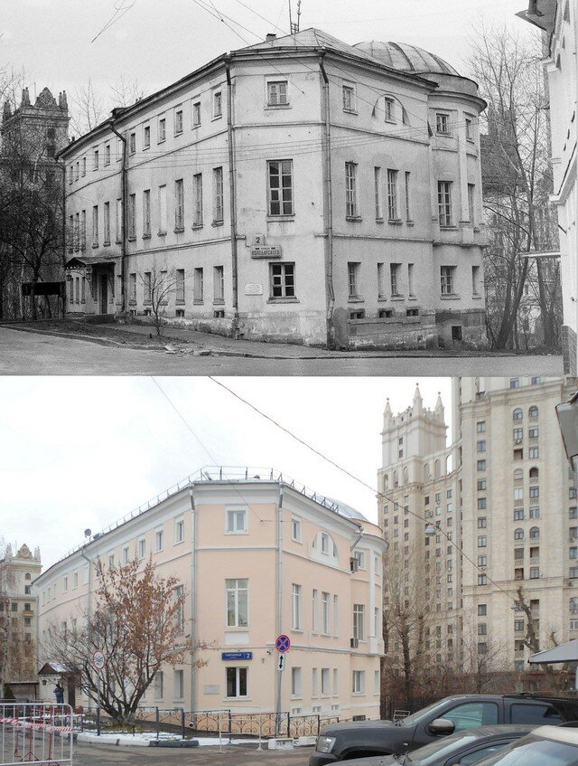 Практически внутри двора нового дома (архитекторы Д.Н.Чечулин и А.К.Ростовский) оказался памятник архитектуры федерального значения - городская усадьба Кирпичева-Ухтомской-Федотовой конца 18 - начала 19 веков (Гончарная, 2). В основе этой городской усадьбы были обнаружены палаты конца 17 столетия, которые в 18 веке вошли в состав строения в стиле классицизм с ротондой на углу. Архитектором, вероятно, является М.Ф.Казаков или же кто-то из его учеников.