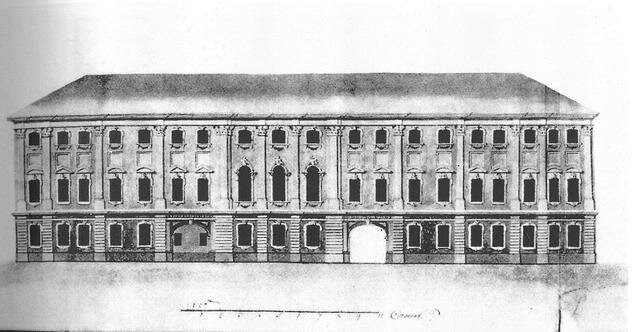 С 1708 по 1738 годы бывшая усадьба В.Ф. Нарышкина находилась во владении Саввы Рагузинского. Видимо, именно в этот период были возведены два корпуса, вытянувшиеся вдоль восточной и западной границ участка, после чего усадебное здание обрело П-образный объем. Тогда изменился облик парадного фасада: прямоугольные окна второго этажа получили выразительные наличники в древнерусском стиле, а над арочным проёмом во двор появился треугольный фронтон, прорезавший линию междуэтажного карниза.